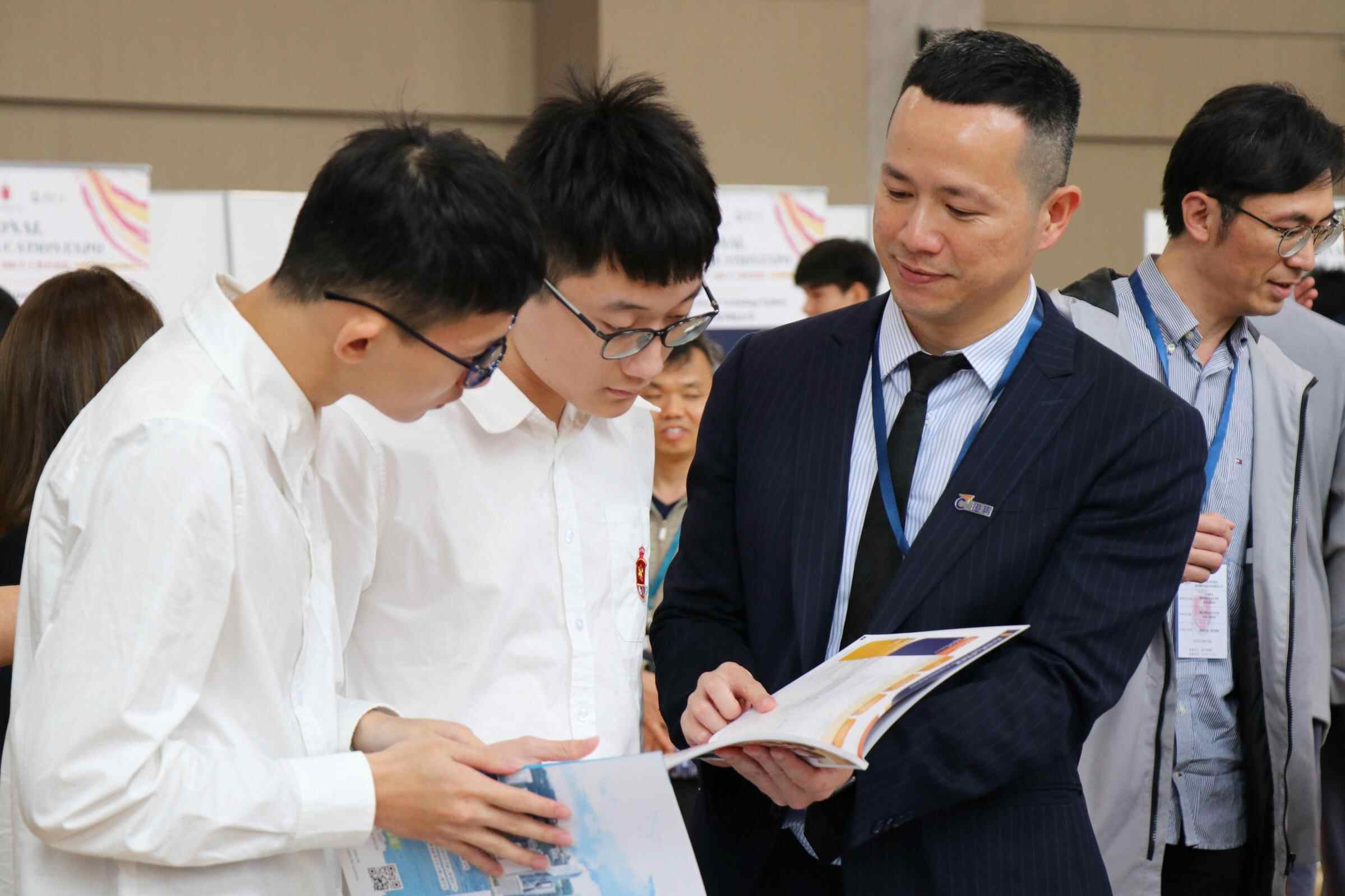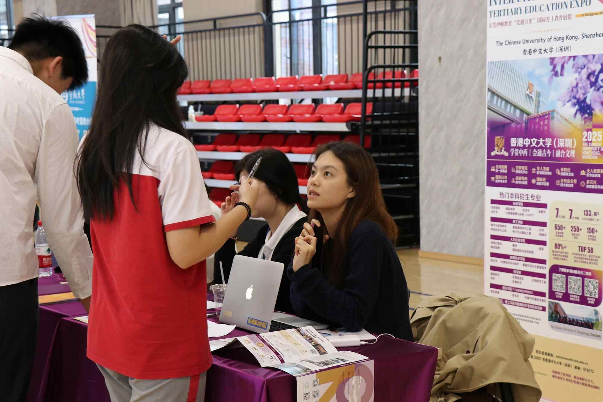 随后,教育展正式开幕。展会期间,包括暨南大学、华侨大学、深圳大学、香港中文大学(深圳)、香港城市大学(东莞)、香港理工大学工业及系统工程学系、香港恒生大学、西交利物浦大学等在内的40多所知名院校及升学机构,在现场向参会师生及家长提供招生咨询。